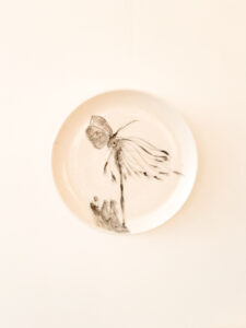 Arte Novos Horizontes Porcelana Árvore de Cerejeira Série Essencial Série Jardim Série Sombras Série Metamorfose Huà 化 Artista Contato Sem título 9 Matheus Almeida Engobe sobre porcelana 20 cm de diâmetro Vendido!